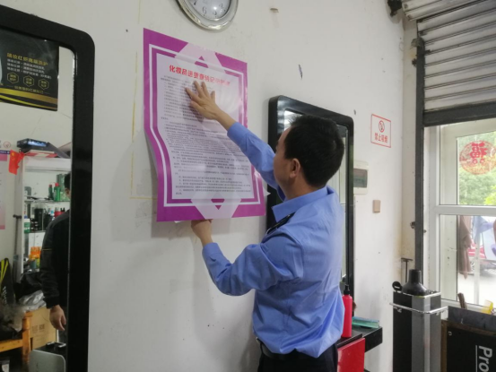 在宣传周期间,开展上门宣传活动,对化妆品经营者及使用者进行面对面宣讲《企业落实化妆品质量安全主体责任监督管理规定》,发放化妆品管理办法及相关知识汇编册,张贴《化妆品进货查验记录制度》、《化妆品经营“六应当”》和《化妆品经营“十不得”》等规范化经营的标准。