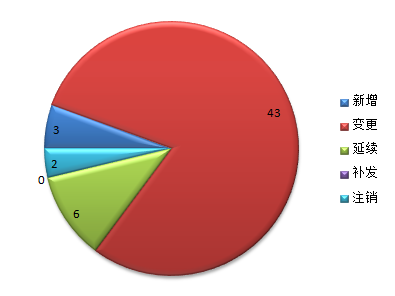 博天堂娱乐生产许可证本期新增3件,变更43件,延续6件,补发0件,注销2件,期末实有237件。